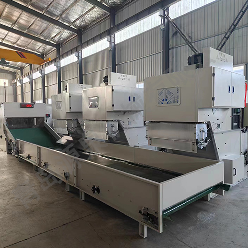 該機器主要用于開松各種等級捆包纖維,且能夠定量喂入。多臺復合使用可按比例混合不同纖維。采用自動控制,調節(jié)范圍大,使不同纖維配比準確,混合均勻,使用新式電子稱重結構,更加節(jié)省人工。